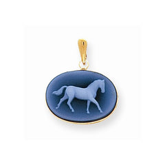 14k Gold 13x18 Full Horse Agate Cameo Pendant