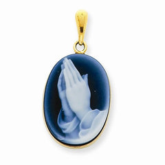 14k Gold 13x18 Hands in Prayer Agate Cameo Pendant
