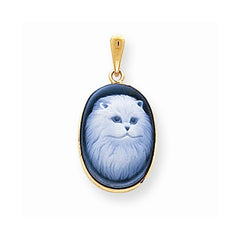14k Gold 13x18mm Persian Cat Agate Cameo Pendant