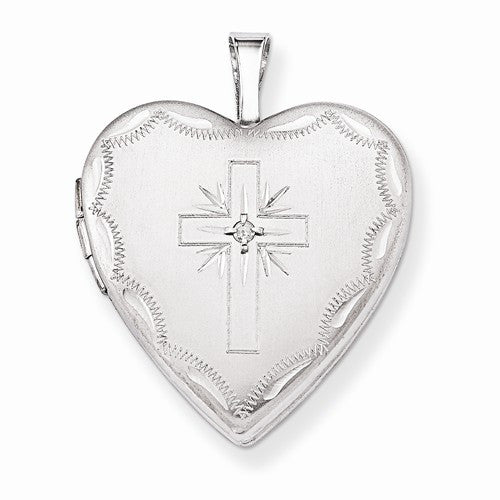 14k Gold 20mm White Gold Diamond Set Cross Heart Locket