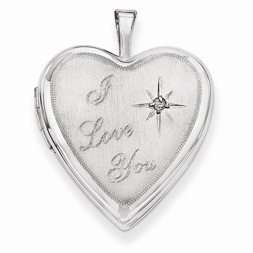 14k Gold 20mm White Gold I Love You w/ Diamond Heart Locket