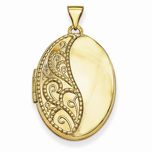 14k Gold 26mm Oval 1/2 Hand Engraved Locket