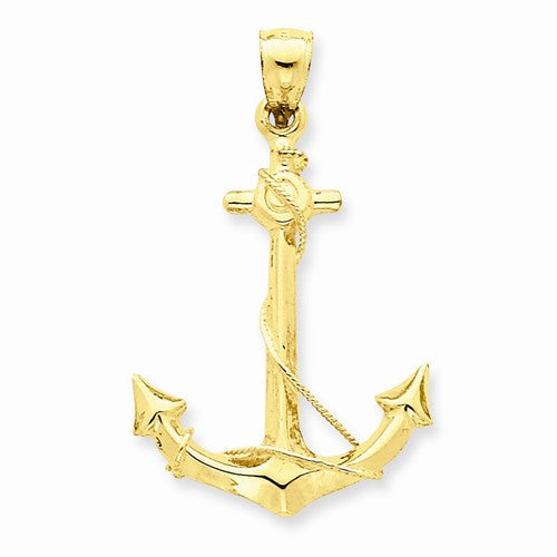 14k Gold 3-D Anchor with Rope pendant, Charm
