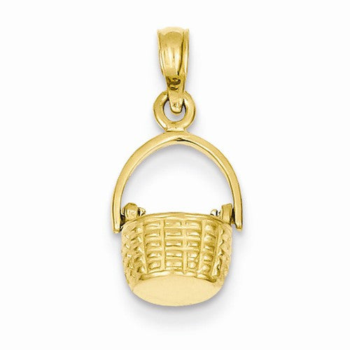 14k Gold 3-D Basket with Moveable Handle Pendant