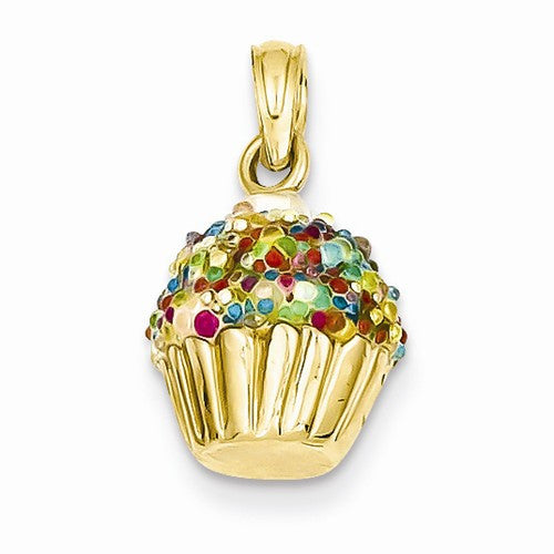 14k Gold 3-D Bead Icing Cupcake Pendant, Pendants for Necklace