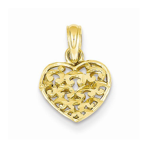 14k Gold 3-D Diamond-cut Puffed Heart Pendant, Pendants for Necklace
