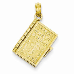14k Gold 3-D Moveable Pages Santa Biblia Book Pendant, Pendants for Necklace