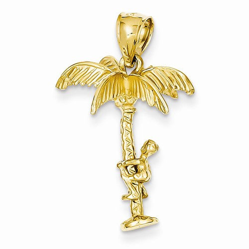 14k Gold 3-D Palm Tree & Climber Pendant