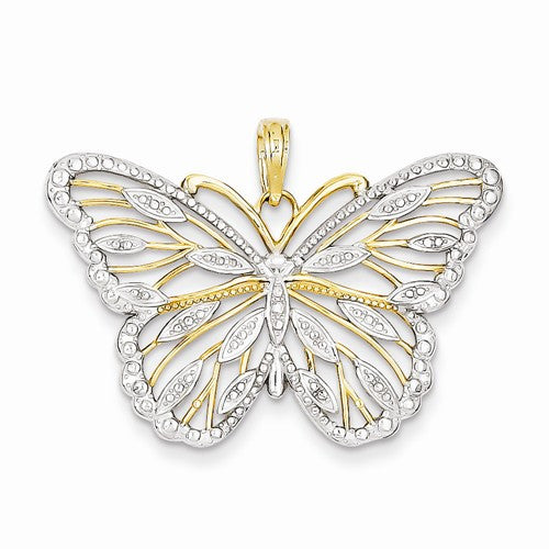 14k Gold and Rhodium Butterfly Pendant, Pendants for Necklace