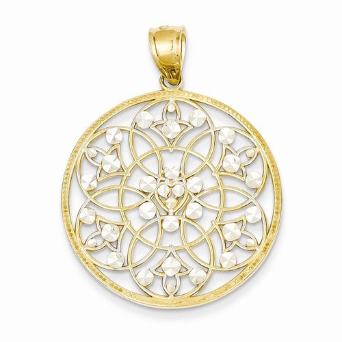 14k Gold and Rhodium Diamond-cut Circle Pendant