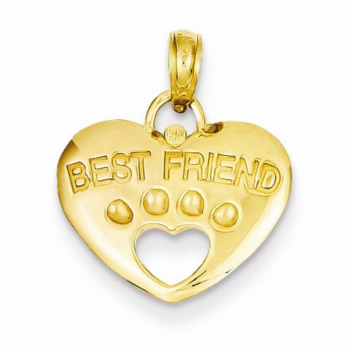 14k Gold Best Friend on Heart with Cut-Out Paw Pendant
