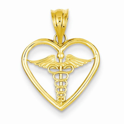 14k Gold Caduceus Heart Medical Pendant