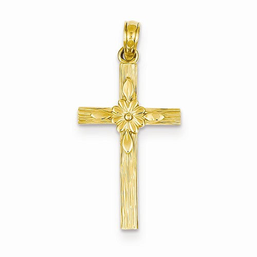 14k Gold Cross with Flower Pendant, Pendants for Necklace