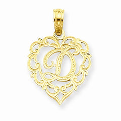 14k Gold D Script Initial in Heart Pendant