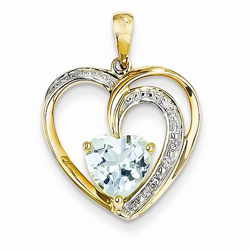 14k Gold Diamond and Blue Topaz Heart pendant, Charm