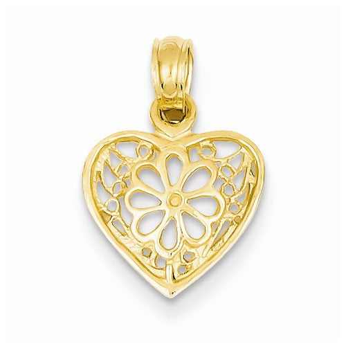 14k Gold Diamond-cut Filigree Heart w/Flower Pendant