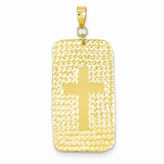 14k Gold Diamond-cut Rectangle Plate Shiny Cross Center Pendant