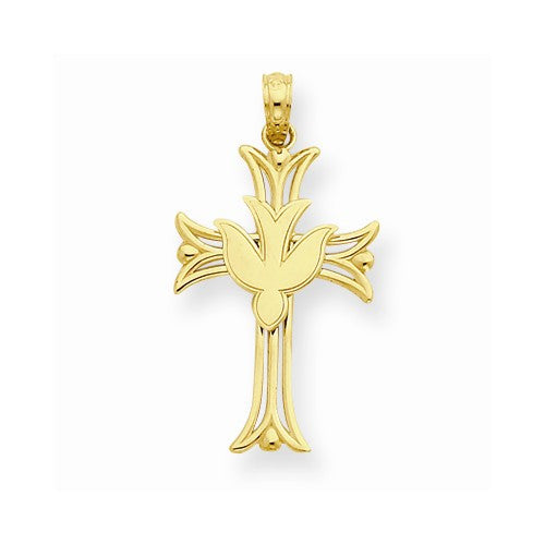 14k Gold Dove on Cross Pendant