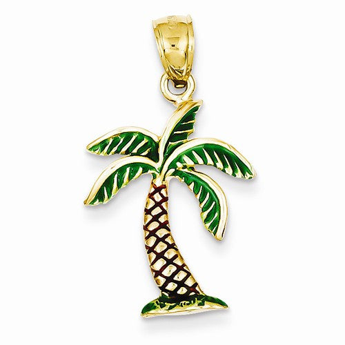 14k Gold Enamel Palm Tree Pendant, Pendants for Necklace
