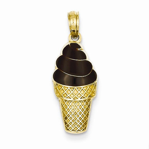 14k Gold Enameled Chocolate Ice Cream Cone Pendant, Pendants for Necklace