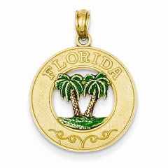 14k Gold Enameled Florida Palm Trees Pendant, Pendants for Necklace
