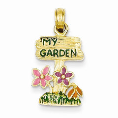 14k Gold Enameled My Garden Sign w/Flowers Pendant, Pendants for Necklace