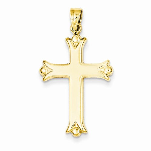 14k Gold Fleur de Lis Hollow Cross Pendant