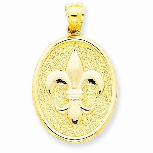 14k Gold Fleure-Lis on Oval Disk Pendant