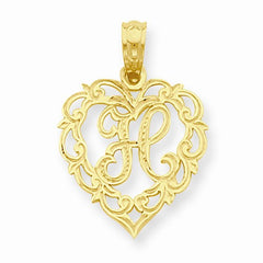 14k Gold H Script Initial in Heart Pendant, Pendants for Necklace