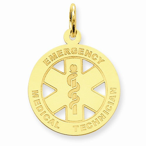 14k Gold Polished Medium EMT Medical Pendant, Pendants for Necklace