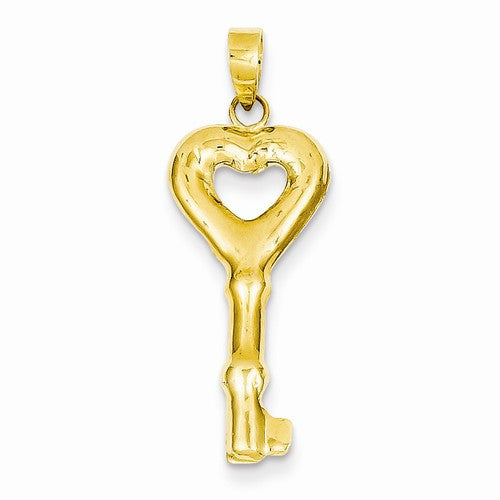 14k Gold Puff Heart Key Pendant, Pendants for Necklace