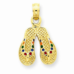 14k Gold Rainbow Enameled Flip Flops Pendant