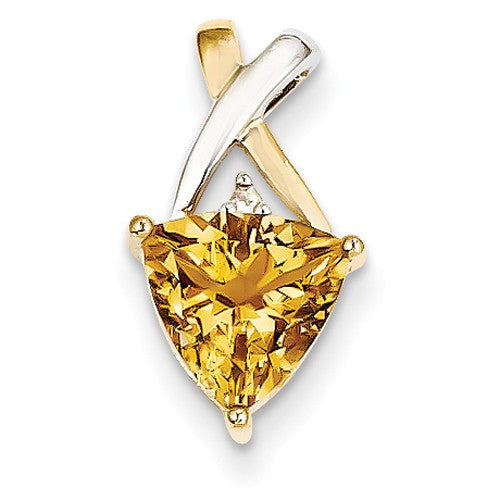 14k Gold & Rhodium Citrine and White Topaz Trillion Pendant