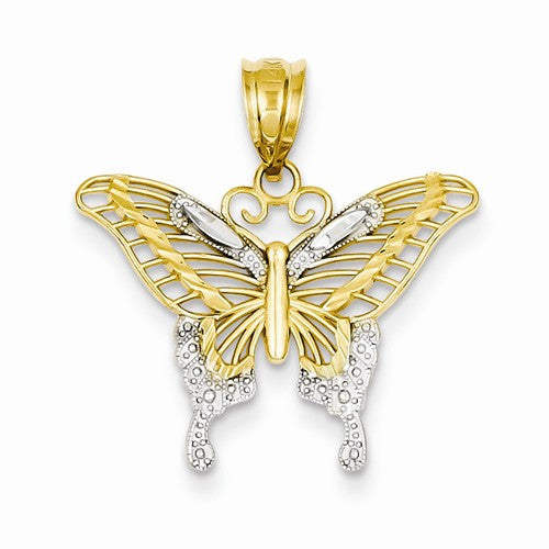 14k Gold & Rhodium Diamond-cut Butterfly pendant