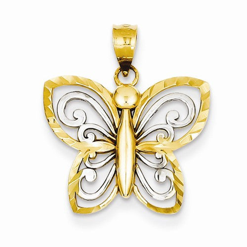 14k Gold & Rhodium Diamond-cut Butterfly pendant