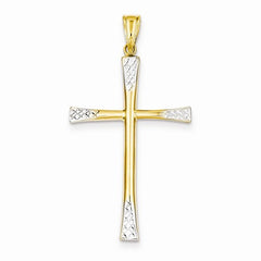 14k Gold & Rhodium Diamond Cut Hollow Cross Pendant