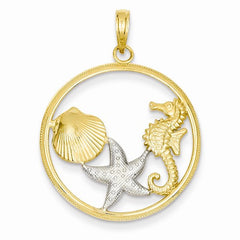 14k Gold & Rhodium Diamond-cut Sea Life Round Pendant, Pendants for Necklace