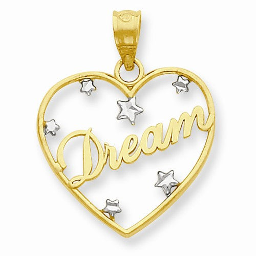 14k Gold & Rhodium Dream in Heart with Floating Star Pendant
