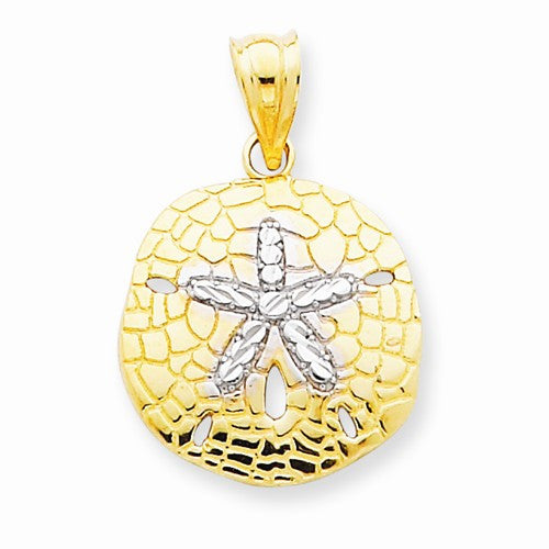 14k Gold & Rhodium Polished Diamond-cut Sand Dollar pendant