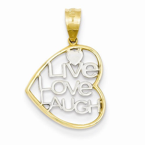 14k Gold & Rhodium Polished Live Love Laugh Pendant
