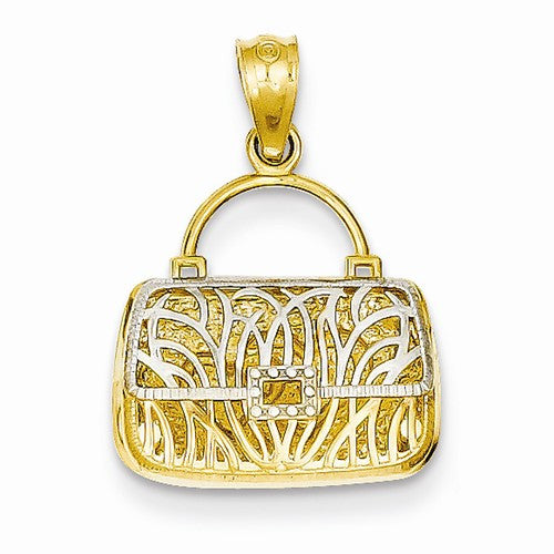 14k Gold & Rhodium Reversible Heart Handbag pendant, Fine Pendants for Necklace