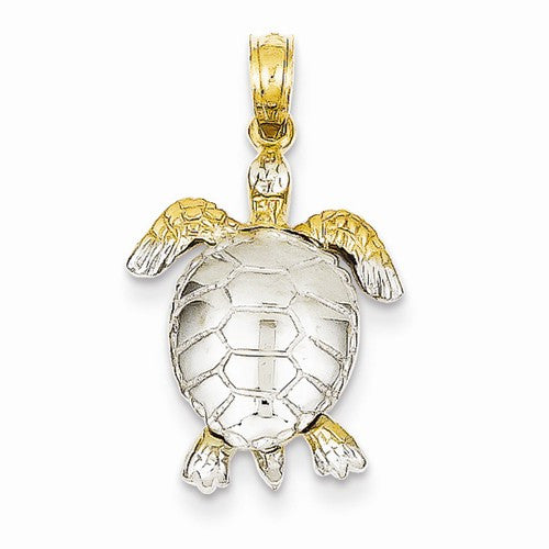 14k Gold & Rhodium Sea Turtle pendant, Adorable Pendants for Necklace