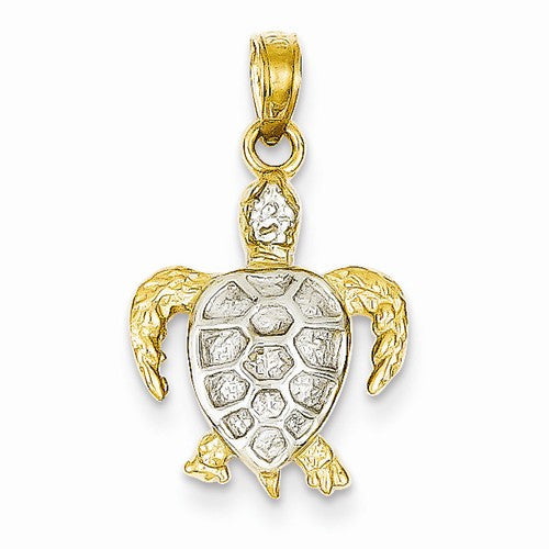 14k Gold & Rhodium Sea Turtle pendant, Charm