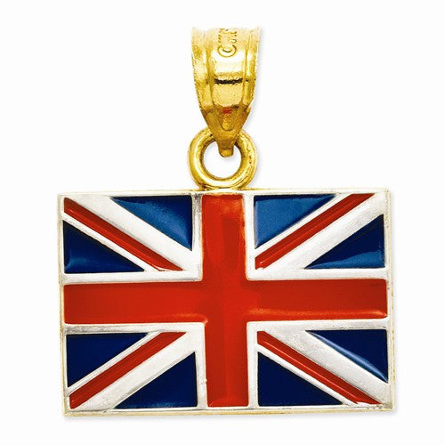 14k Gold & Rhodium Solid Enameled United Kingdom Flag Pendant