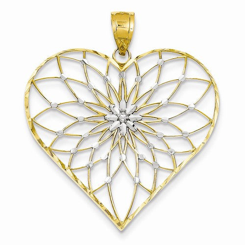 14k Gold & Rhodium Starburst Center Heart Pendant