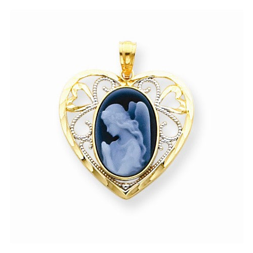 14k Gold & Rhodium Wings of Love Cameo Pendant