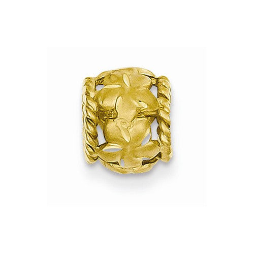 14k Gold Rope Edge Plumeria Barrel Chain Slide Pendant