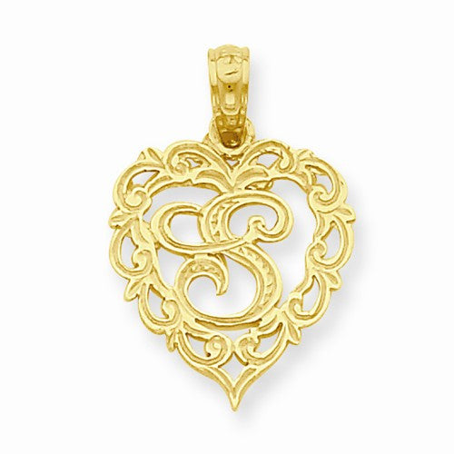 14k Gold S Script Initial in Heart Pendant, Pendants for Necklace