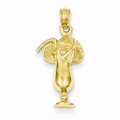 14k Gold Satin Polished Open-Backed Tropical Drink Pendant, Pendants for Necklace