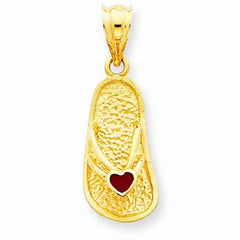 14k Gold Solid 3-Dimensional Red Enameled Sandal Pendant